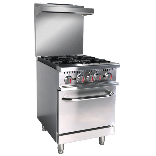 • Commercial-duty gas range with stainless steel exterior• Single 30,000 BTU oven with interior black enamel finish• 6”adjustable Stainless steel legs• Insulated brushed stainless steel oven door handle• Oven racking can be adjusted to 4 different heights• Temperature-controlled thermostat for precise control• High-rise stainless steel backsplash and shelf.• Insulated oven door for added heat efficiency• Oven temperature range 250° F to 550° F• Heavy-duty, cast-iron grates with built-in burner protection• Full-width removable drip-pan tray• Cast-iron grates are removable for day-end cleaning• Heat-resistant, cool-to-touch temperature-control knobs• Front access panel for easy maintenance• Front plate is notched for lighting pilot lights• Each burner is 30,000 BTU• Shipped with natural gas, unit comes with kit for conversion to propane